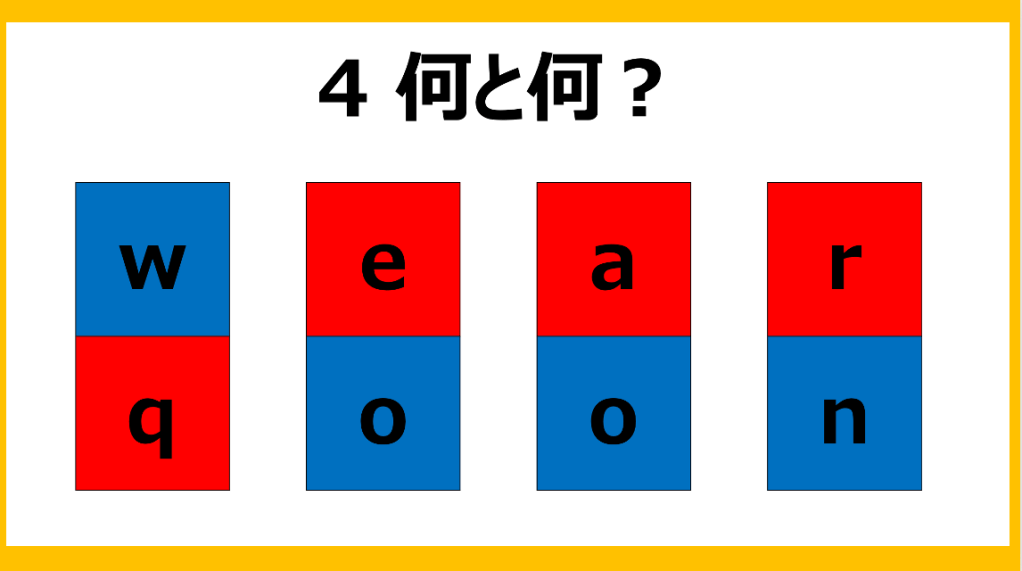 「4は4じゃないよ。赤と青の形何かに似てないかな??」