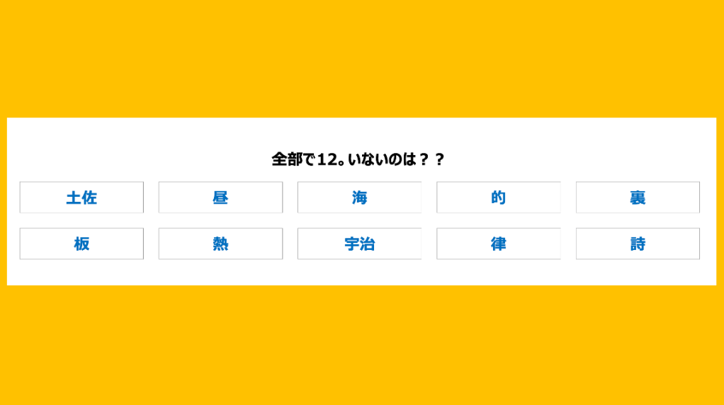 「漢字をひらがなに変えよう。並び替えると12にまつわる何かが11個出てくるよ」