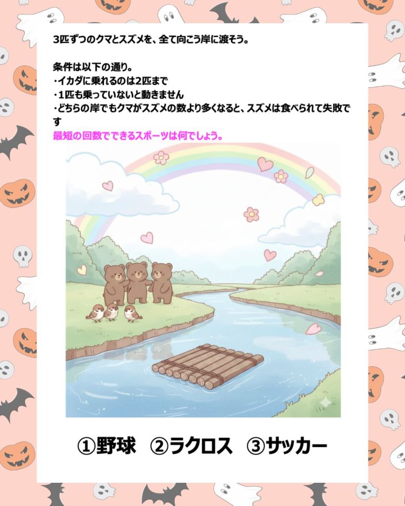 あの有名な「川渡りクイズ」です。